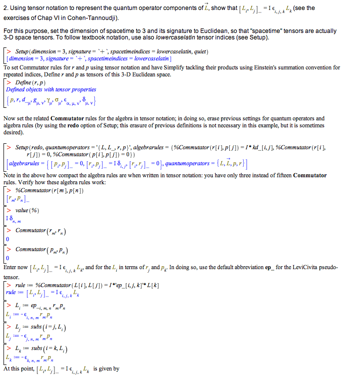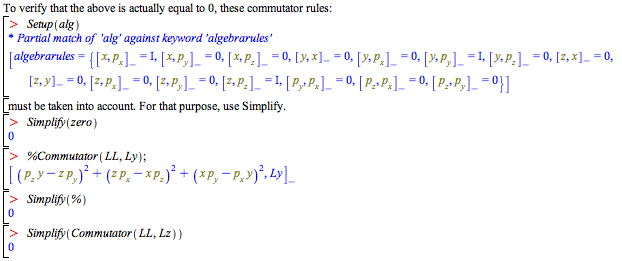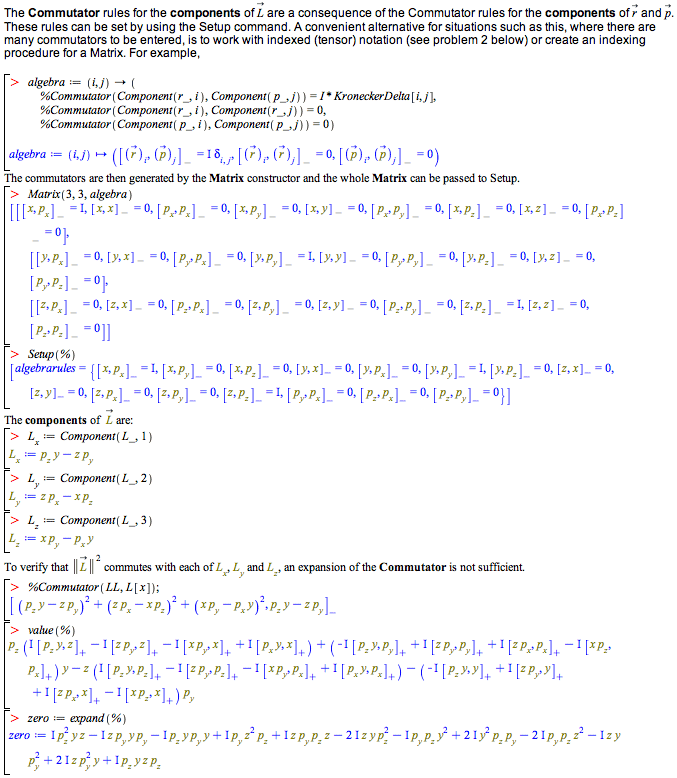 下表 列出了Maple在物理学代数计算方面的能力。在所有情况下,该领域的问题均可使用与纸上书写相同的符号在Maple中表达,结果展示方式与教科书中的呈现形式完全一致。
